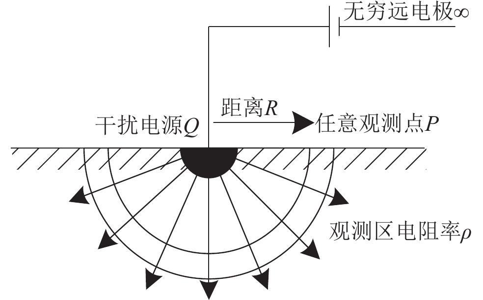 China’s seismic network currently comprises 113 geoelectric field monitoring stations. To effectively utilize geoelectric field monitoring data for earthquake prediction, it is crucial to accurately differentiate between seismic and non-seismic anomalies. However, with the rapid development of China’s economy, agricultural production, and industrial construction around these monitoring stations, interference from electrical equipment leakage has escalated. This interference represents a significant non-seismic anomaly that adversely affects the quality of observation data and its application efficiency. 1) The impact of electrical equipment leakage on geoelectric field observation can be characterized as follows: 2) The observation curve exhibits significant steps, peaks, or dips. 3) The daily variation pattern of the geoelectric field is suppressed. 4) The amplitude of each component of the geoelectric field varies due to the relative positions of the leakage points. 5) The interference in each channel begins and ends at the same time, synchronized with the leakage period, although the degree of influence may differ. 6) The interference amplitude is inversely proportional to the distance between the interference source and the electrode and directly proportional to the magnitude of the leakage current. Leakage interference within the measurement area constitutes a non-seismic anomaly that significantly impacts the quality of the observation data. Therefore, it is essential to identify and promptly investigate sources of interference in daily earthquake monitoring to minimize data loss caused by such interference. Currently, two types of interference sources can be identified based on examples encountered by stations: point source interference and dipole source interference. However, there is currently no high-precision positioning algorithm available for point sources. This study established a point source interference model based on a uniform semi-infinite space, analyzed the theoretical influence amplitude of point sources on geoelectric field observation through model theory, proposed a point source interference localization method, and applied the algorithm to the actual interference investigation work of Gaoyou Station in Jiangsu Province and Hanwang Station in Gansu Province. The position of the interference source was calculated based on the observed interference shape and change amplitude. The positioning direction and area were consistent with the actual interference source position. The positioning error of interference sources outside the measurement area was less than 2%, and the positioning error of interference sources inside the measurement area was less than 20 meters. The main sources of positioning calculation errors are as follows: First, this method establishes a point source model based on a uniform semi-infinite medium, but the underground medium of the station is not completely uniform and isotropic. The non-uniform structure of the underground electrical properties will affect the propagation of electric field signals, resulting in certain calculation errors. However, this error has a relatively small effect, and the source of interference can still be located in a small area. Second, when the observation data is interfered with, the interference signal and the ground electric field observation signal are superimposed, and the ground electric field is constantly changing, making it difficult to accurately extract the interference amplitude. Inaccurate extraction of the interference amplitude leads to errors in the calculation results. In subsequent applications, multiple positioning calculations can be used to calculate the average and minimize the error in the calculation results. The positioning algorithm proposed in this article provides a sound solution for identifying point source leakage interference.