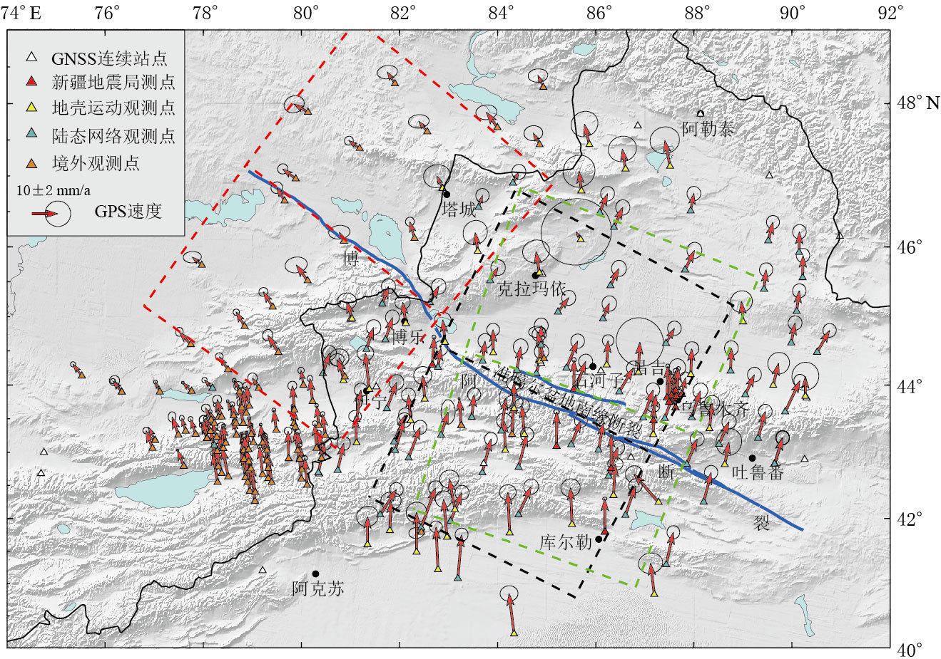 Based on the latest multiple-epoch observation data of the GPS sites in northern Tianshan mountain, this paper obtained the present-day GPS sites velocity fields of the crustal movement in northern Tianshan mountain, using GAMIT/GLOBK processing software. Based on an elastic half-space dislocation model, slip rate of the two typical faults are constrained by GPS-derived crustal deformation displacement velocities of the northern Tianshan mountain. One fault is Boluokenu-Aqikekuduke (BoA for short) fault, and the other is southern margin fault of Junggar basin. The GPS results show that the slip rate difference between east and west segment of right-lateral strike-slip BoA fault is not obvious. The fault exhibted creeping slightly with micro-seismicity within 1—2 mm/a since